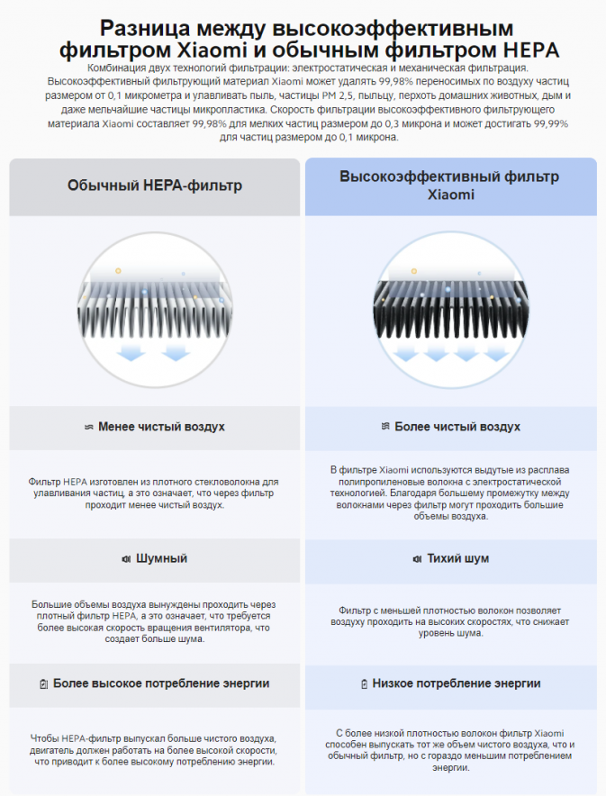| Фильтрация | пыль, дым, микропластик, неприятные запахи, перхоть, частицы PM2.5 |